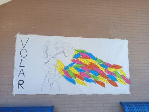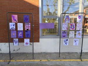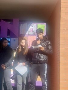 Para ello, durante el recreo se realizaron diversas actividades, como la lectura de un manifiesto por parte de dos alumnas de 2º Bachillerato, una lectura de microrelatos, un minuto de silencio, diversas exposiciones, la entrega de un diploma para el ganador/a del concurso «carteles por la igualdad» y el taller «volar».